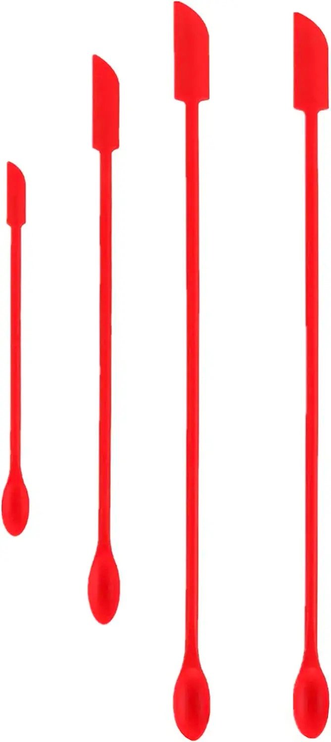 Tiny scraper head can easily enter and exit the small bottle mouth and scoop out the last drop of the small bottle. Integrated silicone scraper, no gap, no residue, durable. Mini silicone spatula set has stainless steel core, which is not easy to break. 4 pieces silicone spatulas of 3 sizes: 12 inches(2PCS), 9 inches(1PC) and 6 inches(1PC).