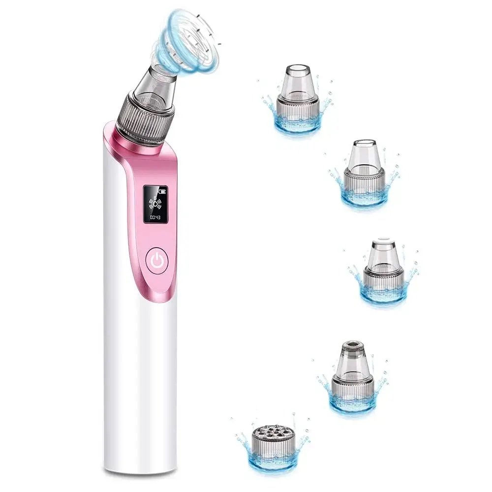 Uses powerful suction to quickly remove blackheads, whiteheads, grease, dead skin, and makeup residue. NOTE: Apply a hot towel or blackhead softener for 5 minutes before using. 3 Adjustable suction modes offer just the right strength for all types of skin. 2 Additional light therapy modes help sooth & revitalize skin.elp revitalize skin, increase skin elasticity, balance oil levels, and improve moisture retention. Comes with 2 silicone heads for sensitive skin and 3 other cleaning heads that don?t just fight blackheads, but also reduce wrinkles and cleanse your skin. A compact design and battery that recharges in just 1 hour let you take your skincare routine on the go.
